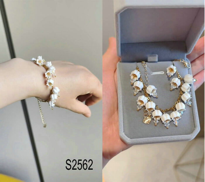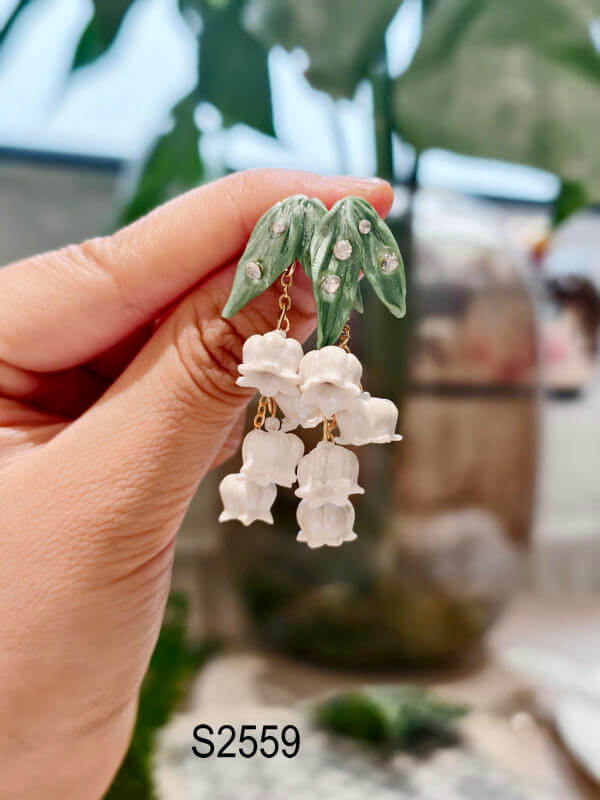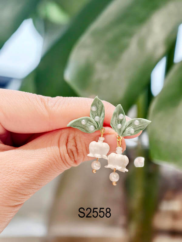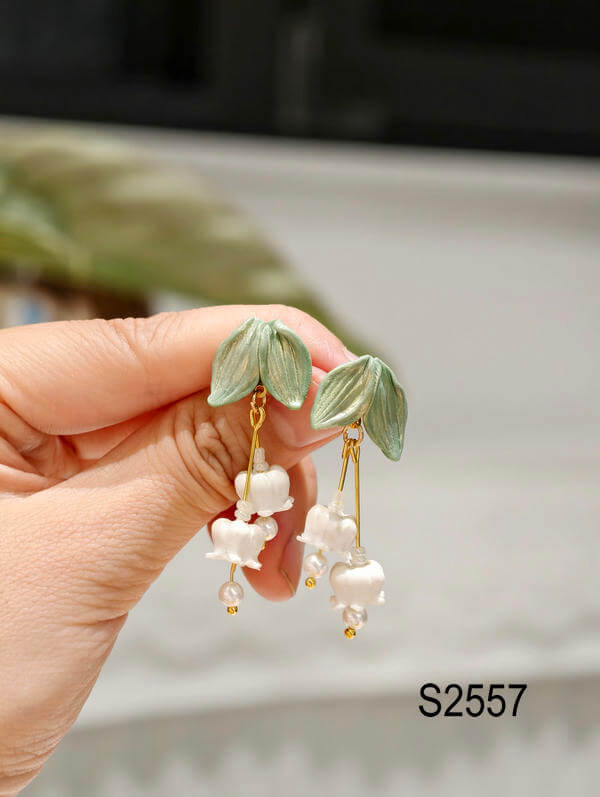 Lily of the valley Bracelet , Floral Stud Earrings with Pearl or Chain Drop, Botanical Jewelry, Gift for Her
