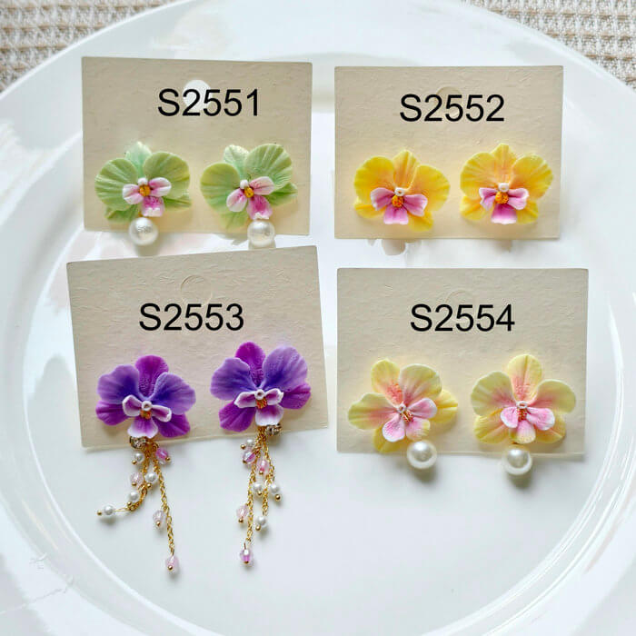Add a touch of nature’s elegance to your look with these handcrafted orchid-inspired clay flower earrings. Each pair is meticulously sculpted from lightweight clay, capturing the soft curves and vibrant colors of real petals. Choose from several enchanting styles—some finished with pearls, others with graceful gold chain dangles.