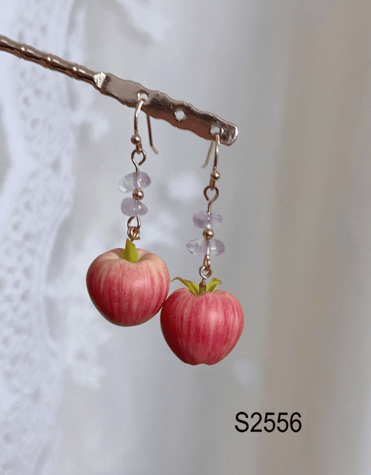 The soft pink tones and tiny apple shapes create a playful, whimsical look—perfect for fruit lovers, cottagecore aesthetics, kawaii fashion, or anyone who loves cute handmade jewelry.