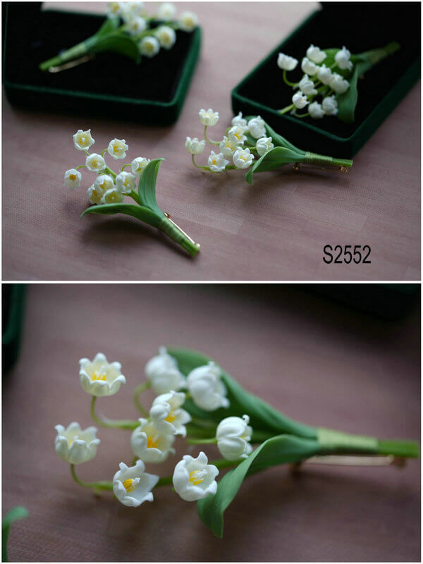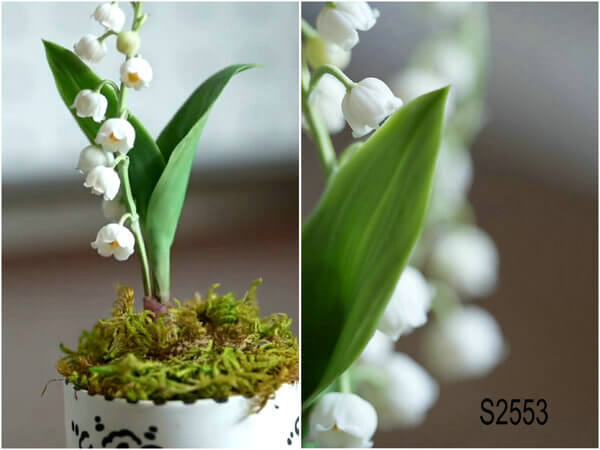 Miniature Handmade Clay Flowers, Lily of the Valley Bouquet, Miniature art, Clay Rose